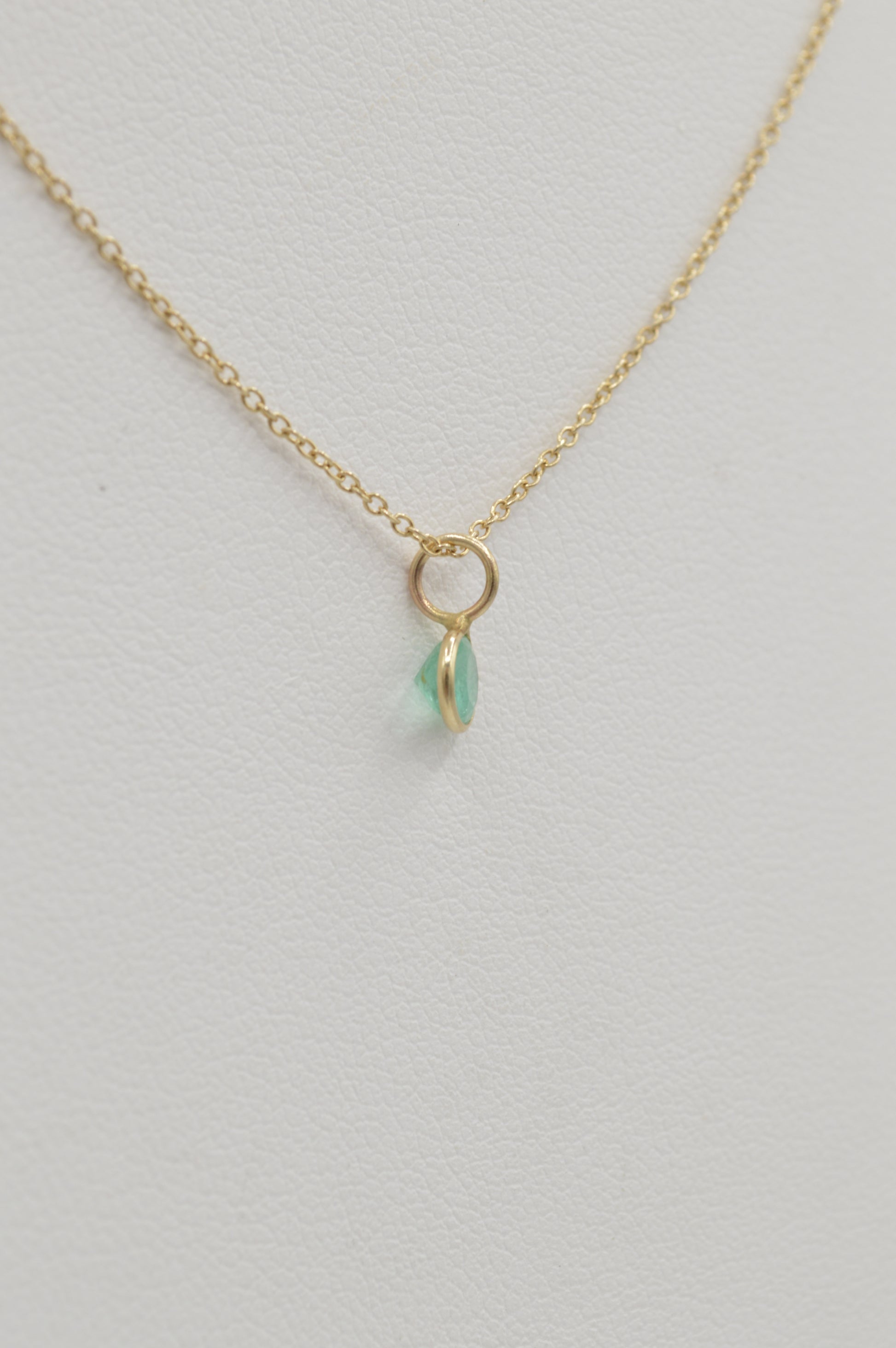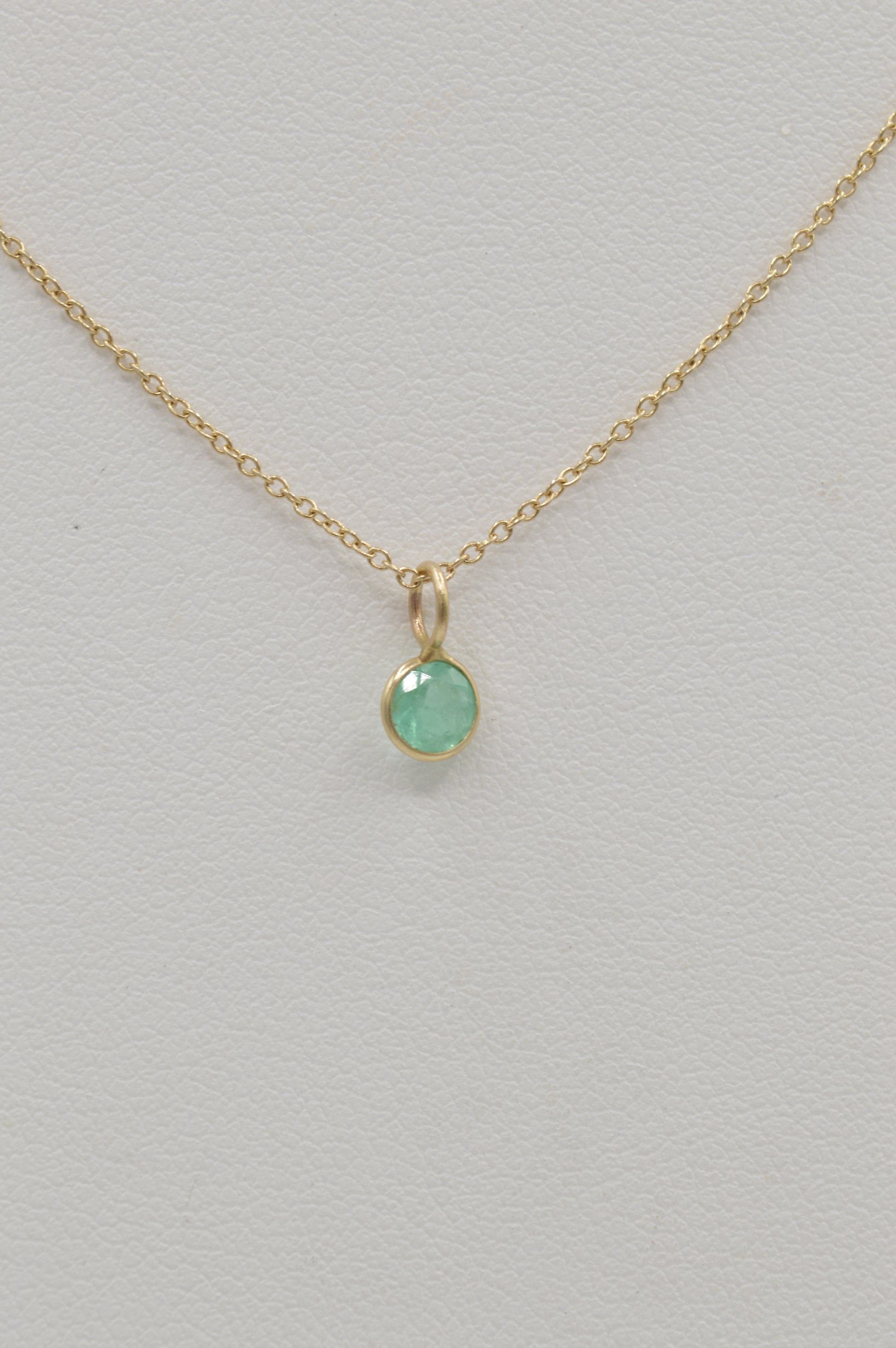 Dainty Round Emerald Charm, 14k
